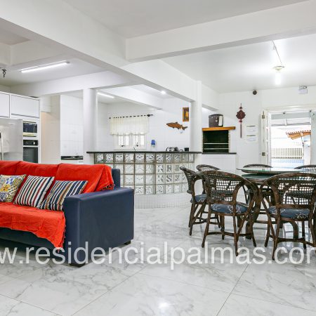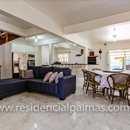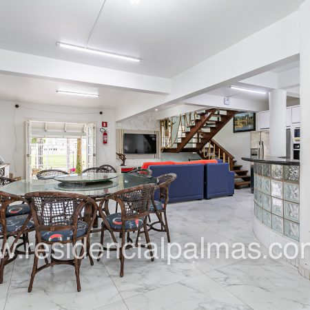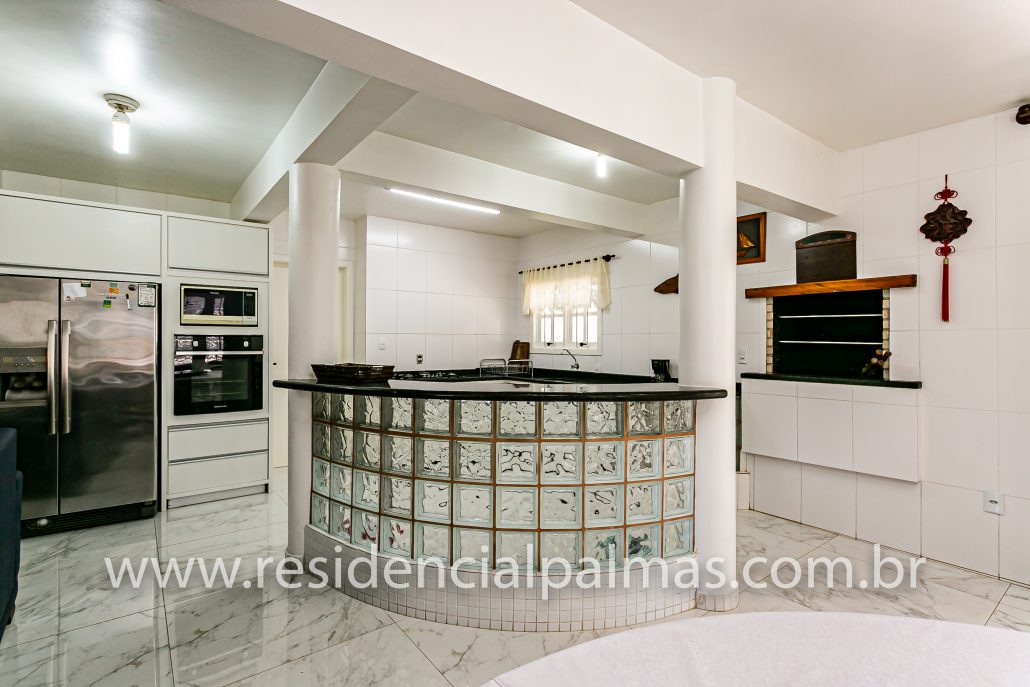 • Cozinha, sala de jantar e estar integrados com churrasqueira interna e lareira;