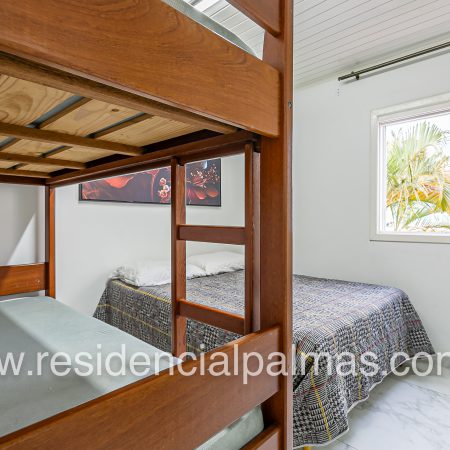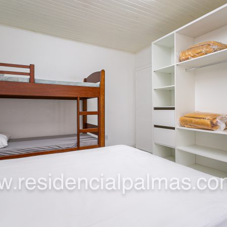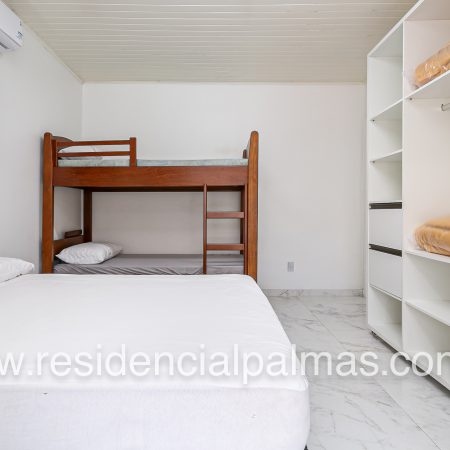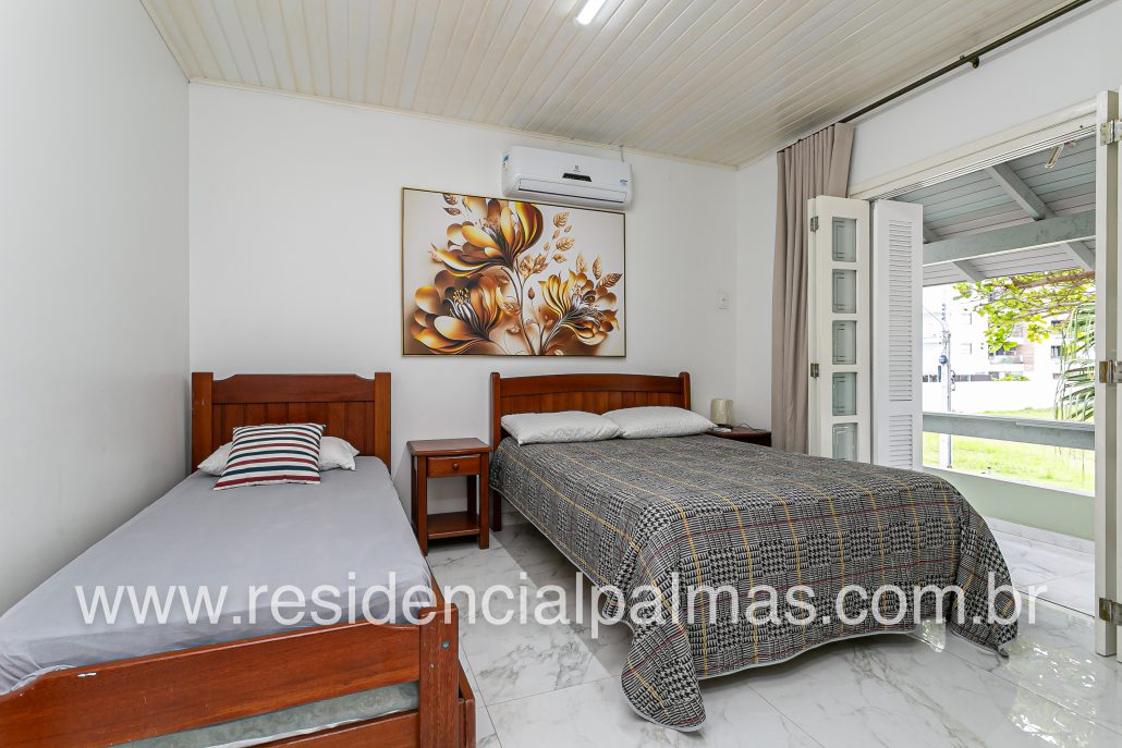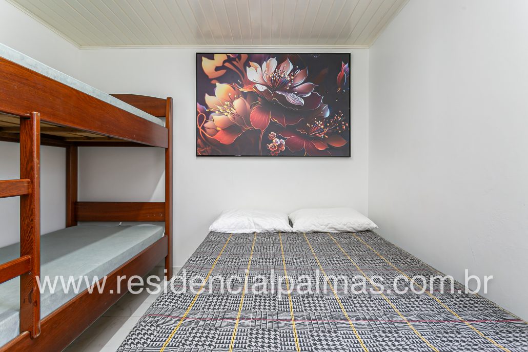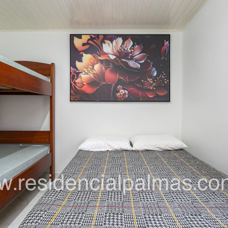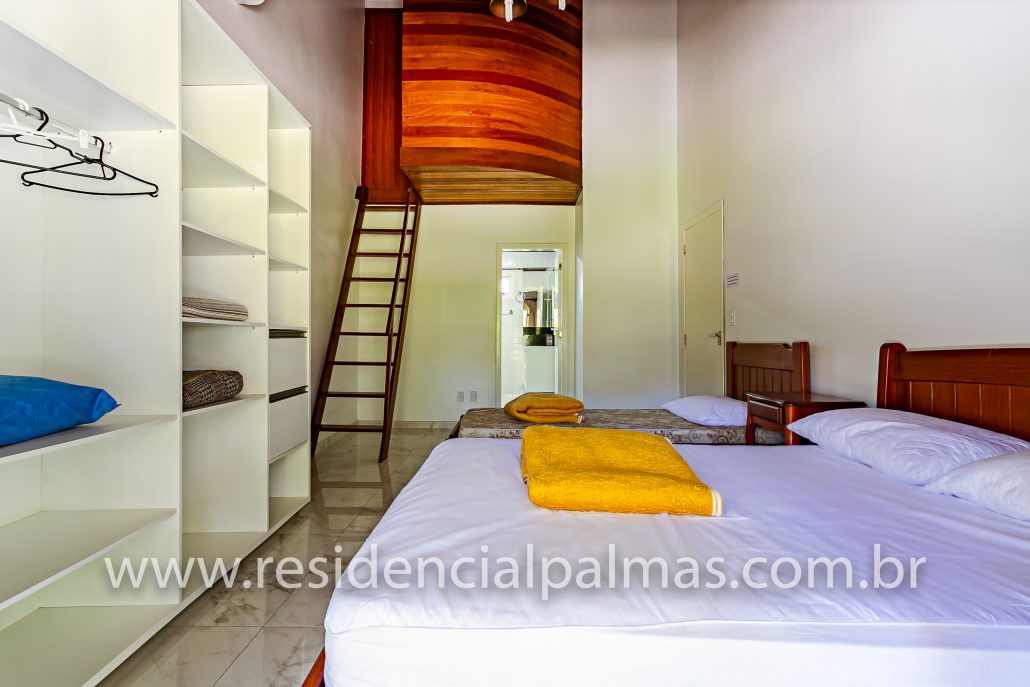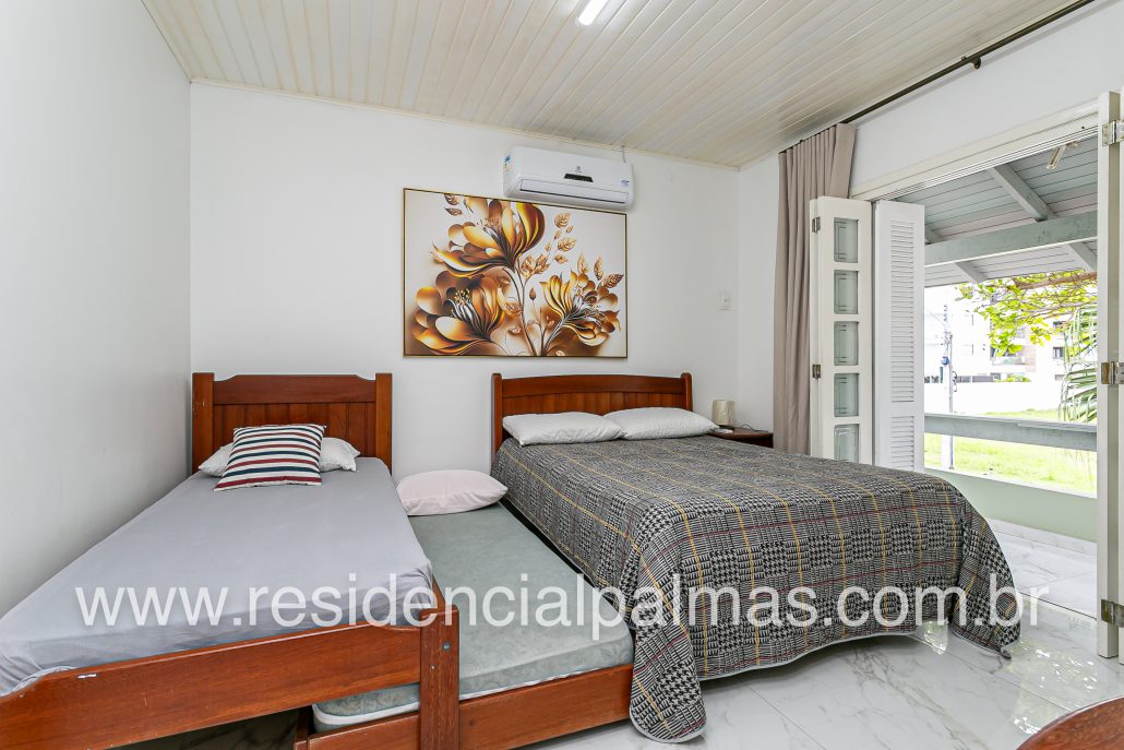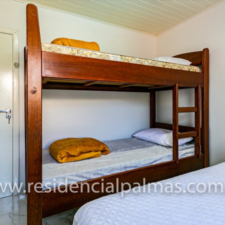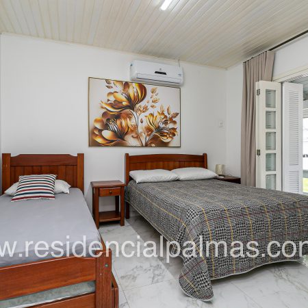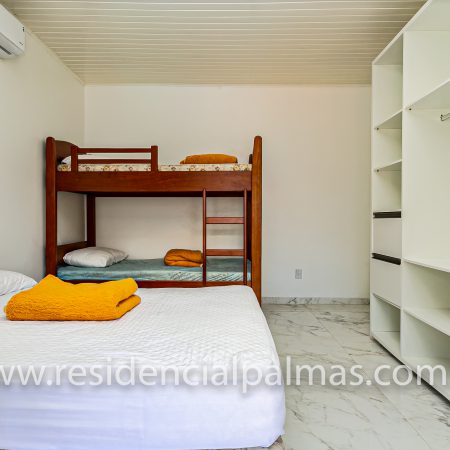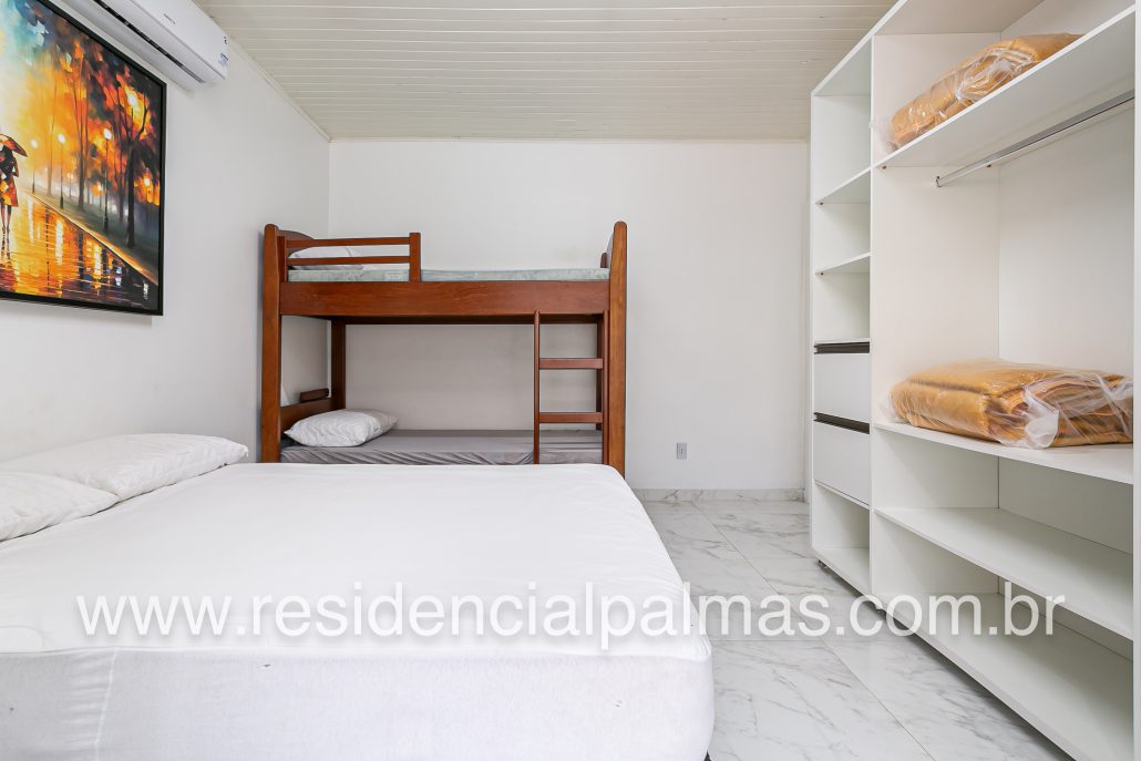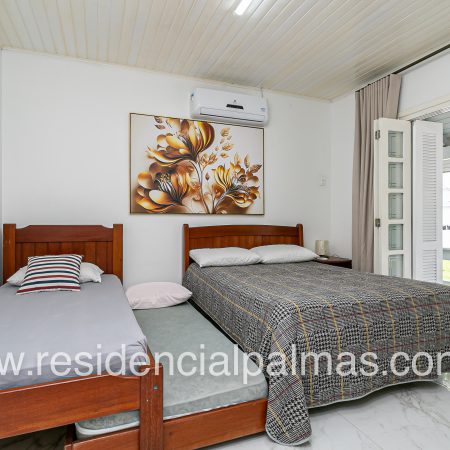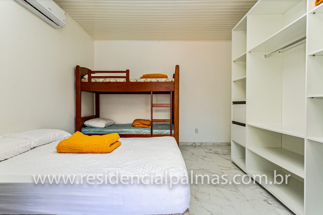 de 2 suítes casal com colchão de mola + bi cama de solteiro, mais dois quartos com cama casal + beliche. Todos com cama casal + solteiros, dormitórios com ar Split .